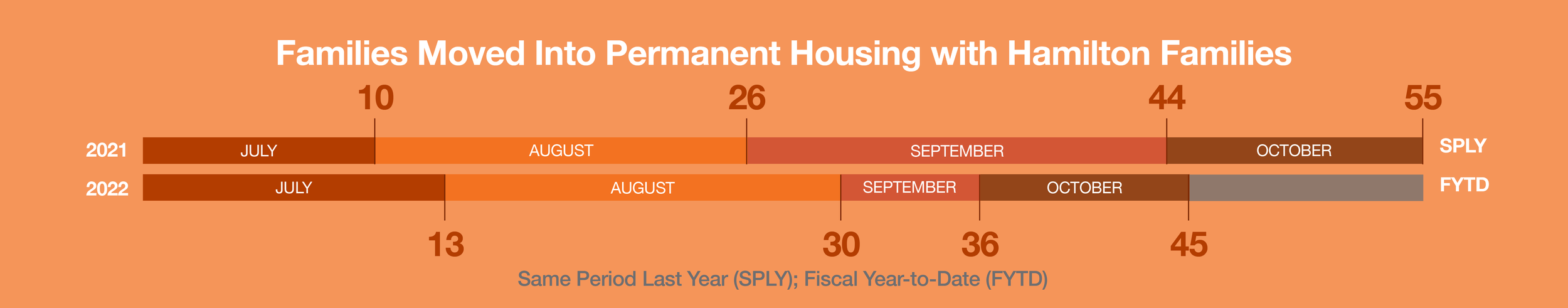 Every month, we track the number of families we moved into permanent housing so we can determine if we are on pace to meet our housing goals for the year. Staying on top of this information helps us ask the important questions — of ourselves and others — to make sure we are doing everything possible to get families into safe and stable homes.